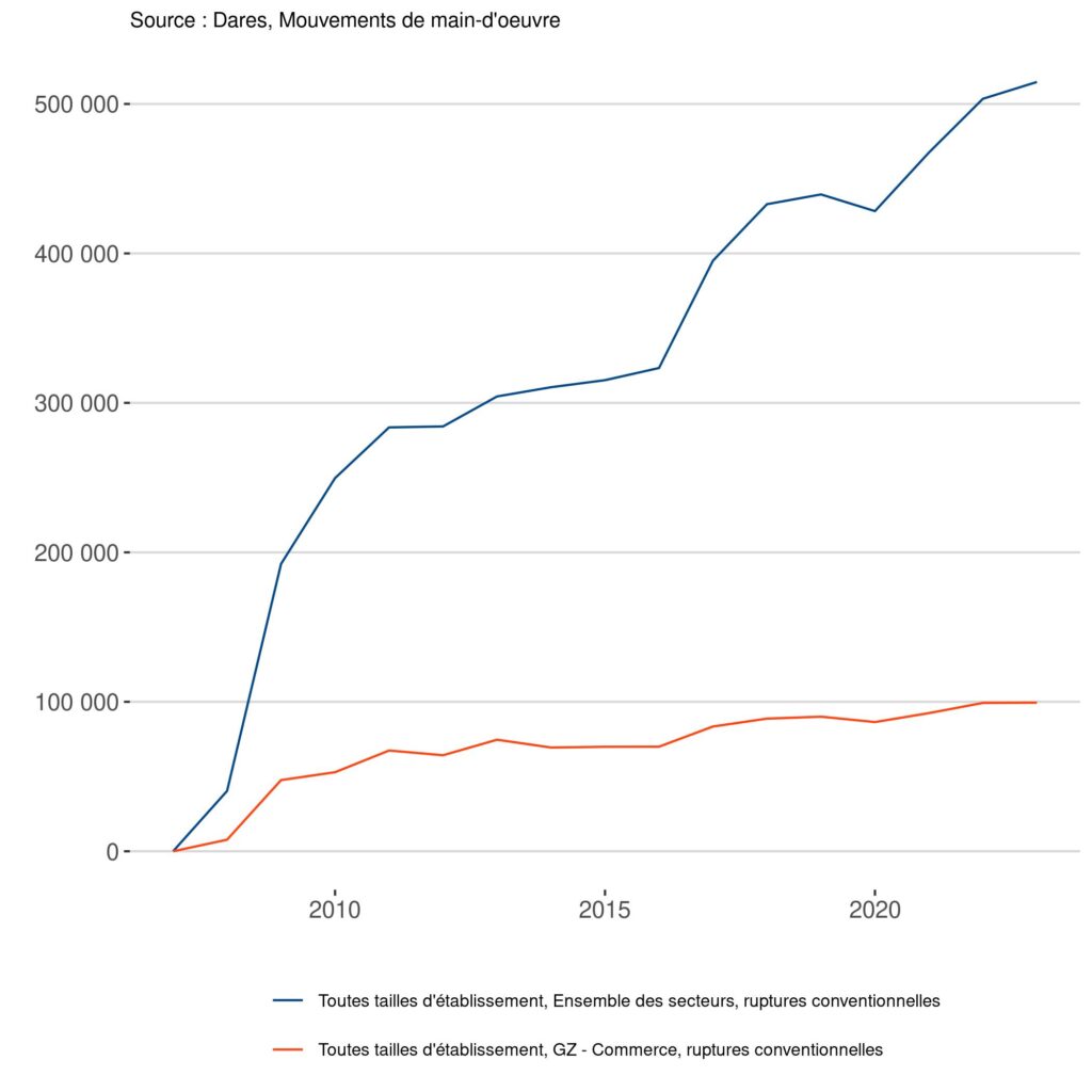 Évolution des ruptures conventionnelles dans le secteur du commerce