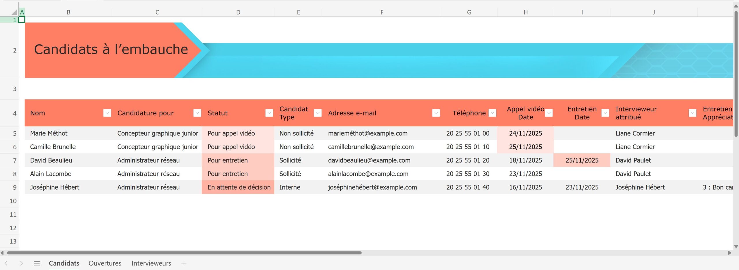 Excel de Microsoft propose un tableur modèle gratuit de suivi des candidats à l’embauche.