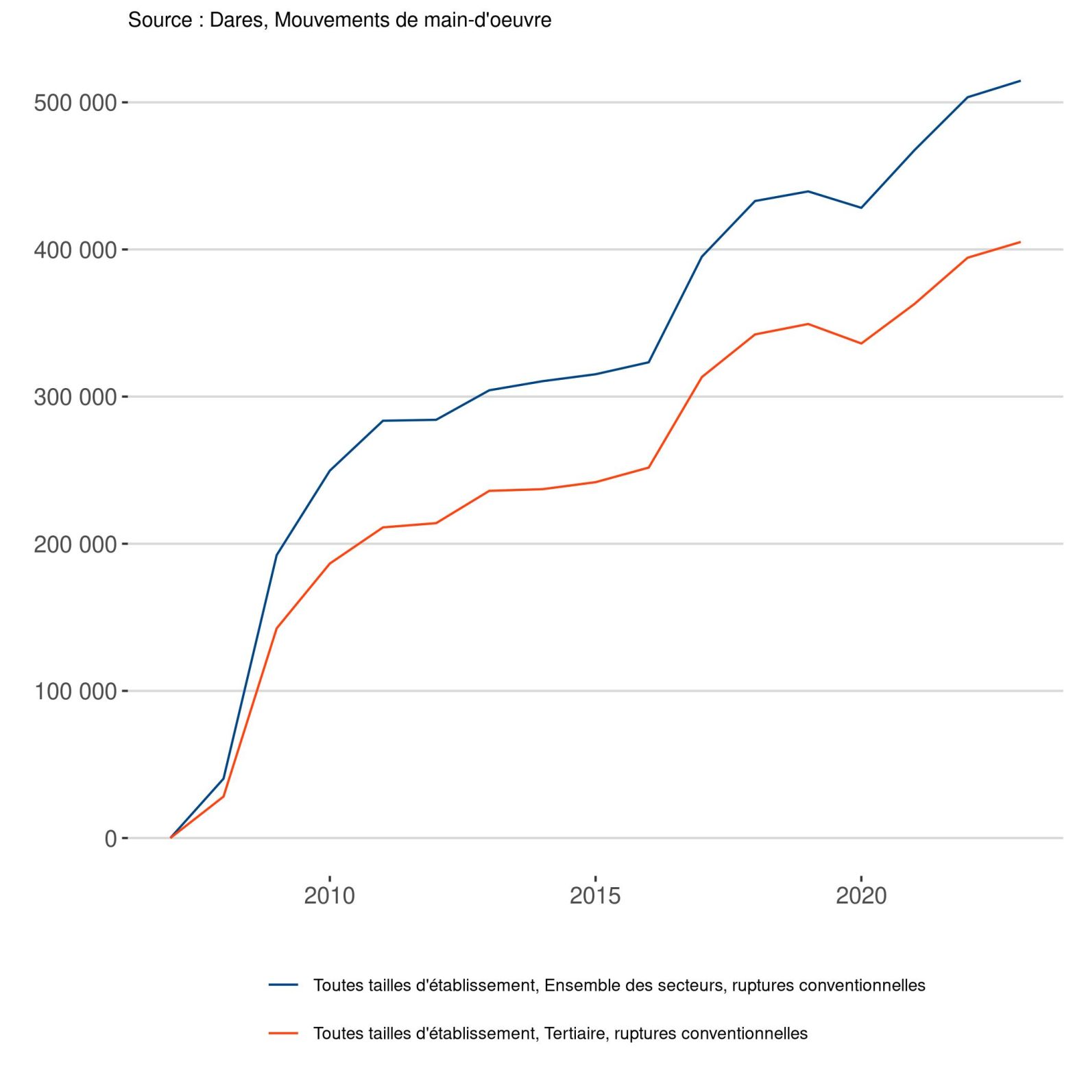 Évolution des ruptures conventionnelles dans le secteur tertiaire