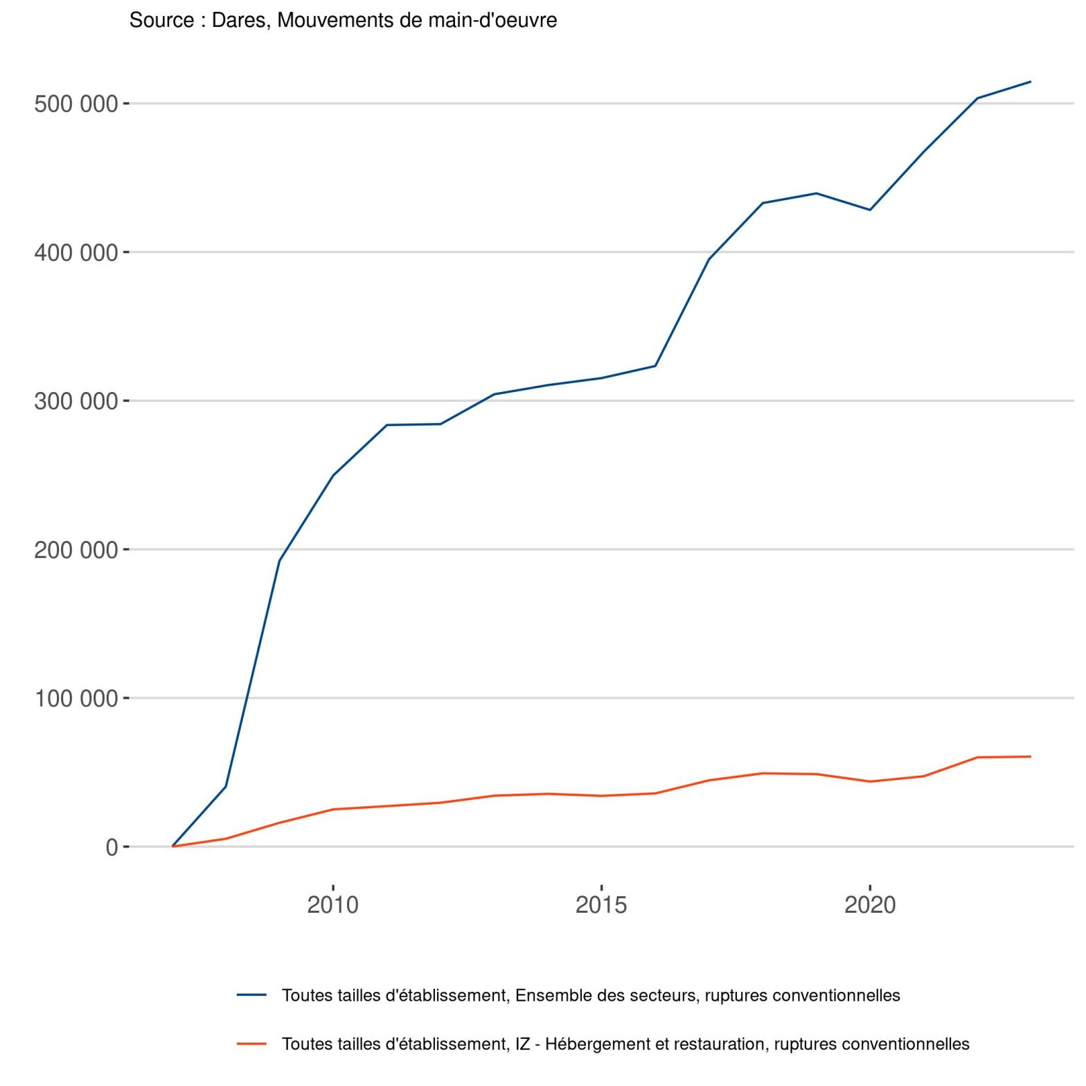 Évolution des ruptures conventionnelles dans le secteur de l’hébergement et de la restauration